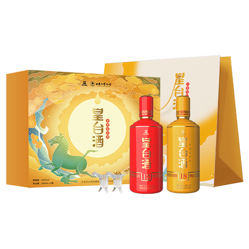 皇臺甘肅博物館馬踏飛燕聯名款禮盒裝52度窖底原漿系列濃香型白酒